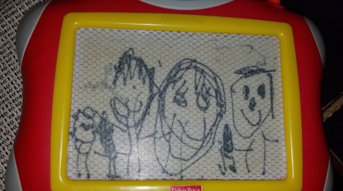 Previous ImageNext Image 20180817_192712 Drawing of me and my granddaughter and my husband that my 3 year old grandaighter drew.